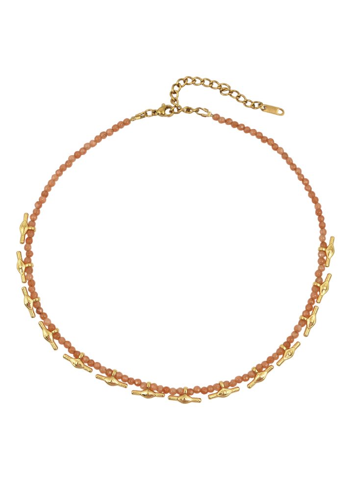 Κολιέ κατασκευασμένο από υψηλής ποιότητας ημιπολύτιμους λίθους και ατσάλινα στοιχεία. Σχεδιασμένο για να προσφέρει κομψότητα συνδυάζει φυσικά στοιχεία με μοντέρνο σχεδιασμό, κάνοντάς το ιδανικό για κάθε περίσταση. Ανθεκτικός σχεδιασμός που διαρκεί.