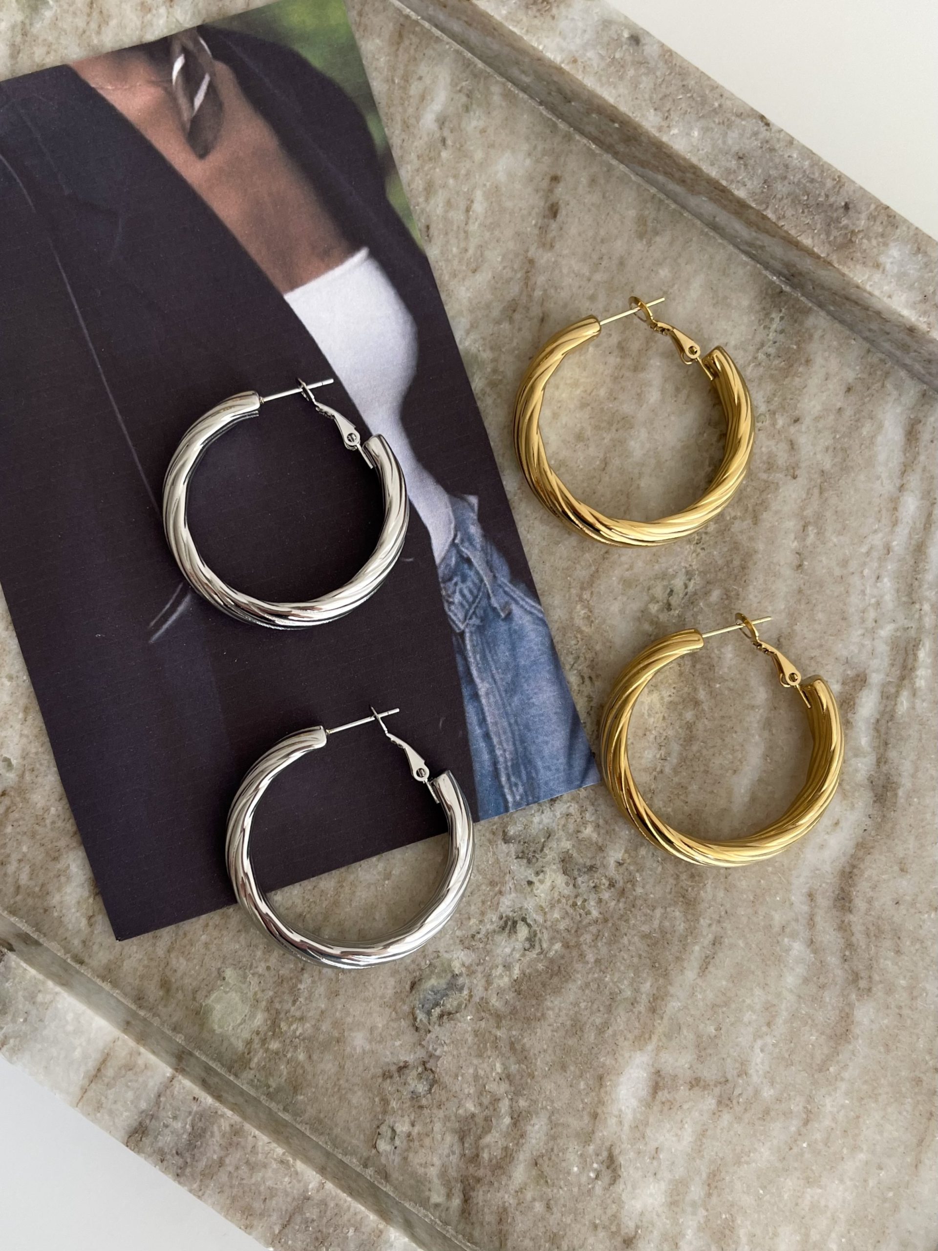 Σκουλαρίκια κατασκευασμένα από υψηλής ποιότητας ατσάλι, σχεδιασμένο για να προσφέρει κομψότητα και ευκολία. Ιδανικό για καθημερινή χρήση και ειδικές περιστάσεις.