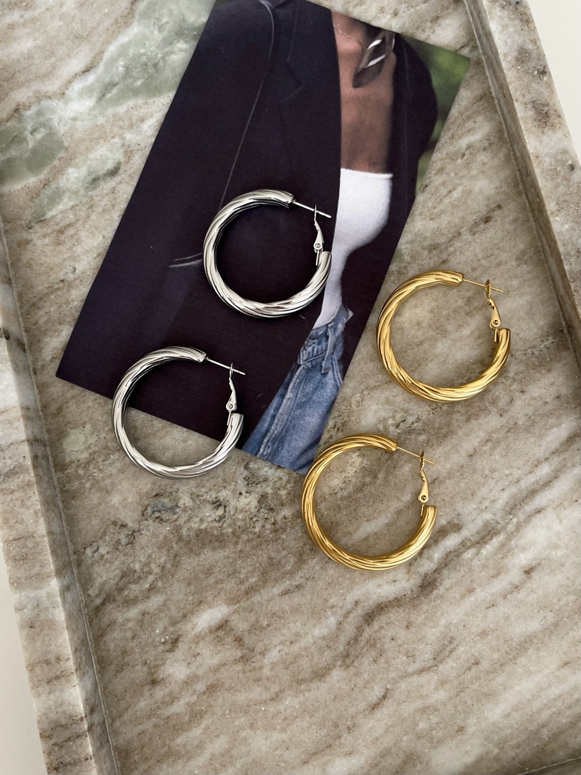 Σκουλαρίκια κατασκευασμένα από υψηλής ποιότητας ατσάλι, σχεδιασμένο για να προσφέρει κομψότητα και ευκολία. Ιδανικό για καθημερινή χρήση και ειδικές περιστάσεις.