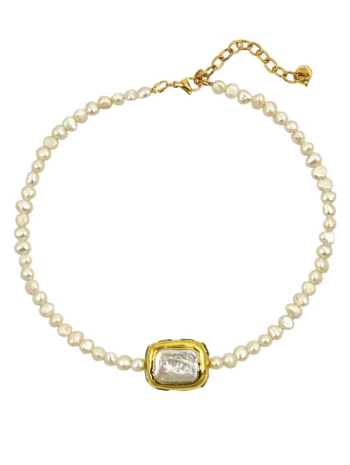 Κολιέ κατασκευασμένο από υψηλής ποιότητας ατσάλι και μαργαριτάρια του γλυκού νερού. Σχεδιασμένο για να προσφέρει κομψότητα συνδυάζει φυσικά στοιχεία με μοντέρνο σχεδιασμό, κάνοντάς το ιδανικό για κάθε περίσταση. Ανθεκτικός σχεδιασμός που διαρκεί.