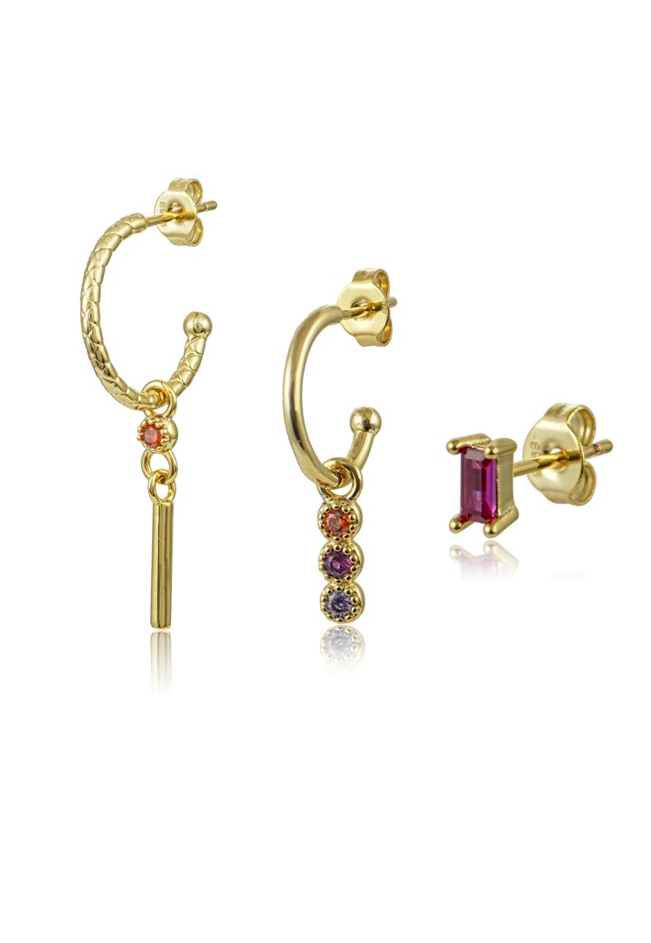 Σετ καρφωτά σκουλαρίκια κατασκευασμένο από ασήμι 925, σχεδιασμένο για να προσφέρει κομψότητα και ευκολία. Ιδανικό για καθημερινή χρήση και ειδικές περιστάσεις. Αποτελείται από 3  τεμάχια, όπως απεικονίζονται.