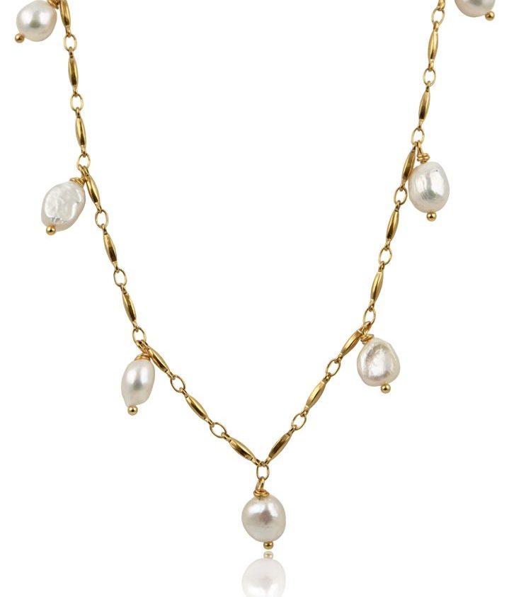 Κολιέ κατασκευασμένο από υψηλής ποιότητας ατσάλι και μαργαριτάρια του γλυκού νερού. Σχεδιασμένο για να προσφέρει κομψότητα συνδυάζει φυσικά στοιχεία με μοντέρνο σχεδιασμό, κάνοντάς το ιδανικό για κάθε περίσταση. Ανθεκτικός σχεδιασμός που διαρκεί.